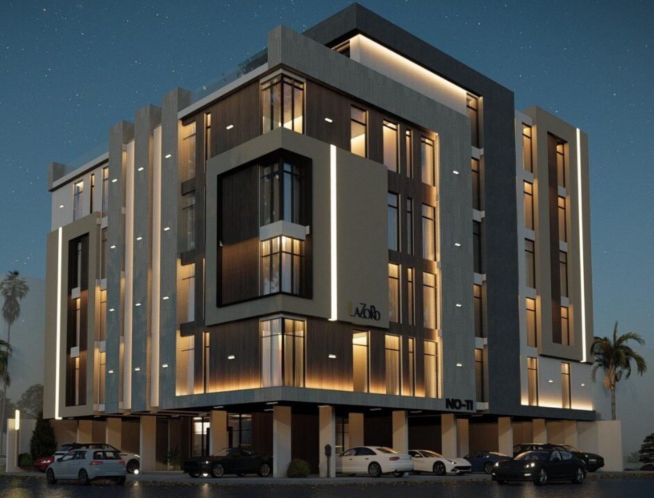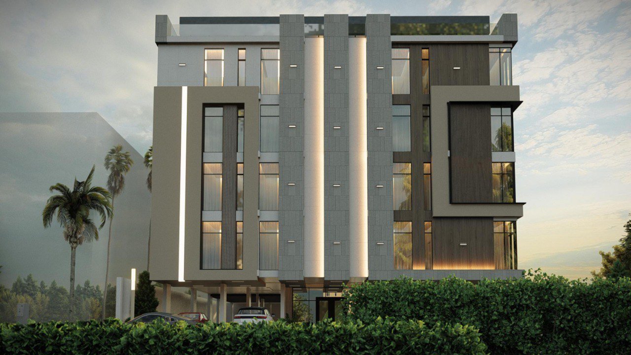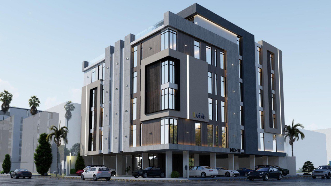 تتكون المشروع من 18 شقة منها 16 شقة 4 غرف بواقع اربع شقق في كل دور متكرراضافة الى شقتين روف في الدور الخامس